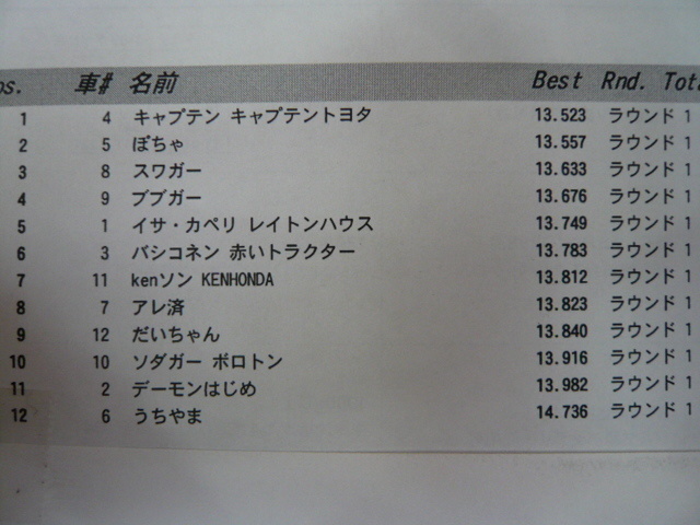 2位のキャプテンはイイとして、問題は3位のハジメさんです!! 第1戦で優勝しているのでハンデが付いているにも関わらずこのポジション、恐るべしデス!!