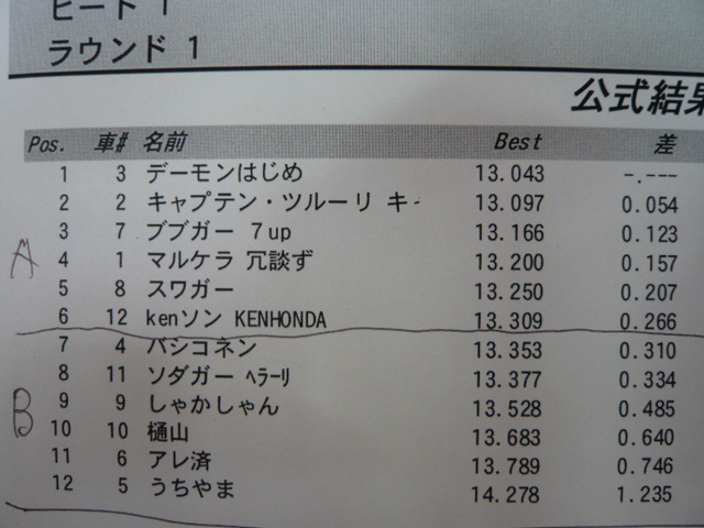 とりあえずは真ん中あたりのタイムが出たようです、何時もはBメインスタートなんですけどね・・・・