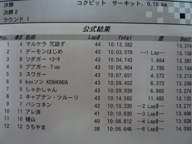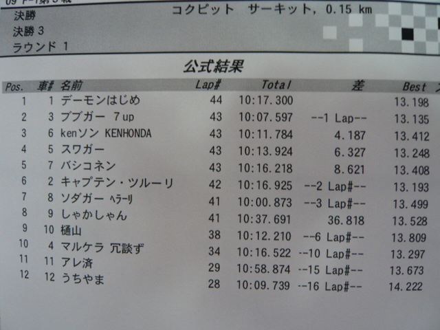 コクピのF1レース第3戦に参加してきました。