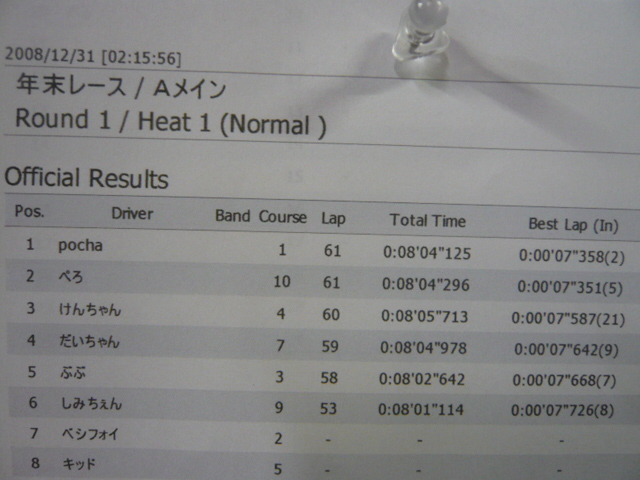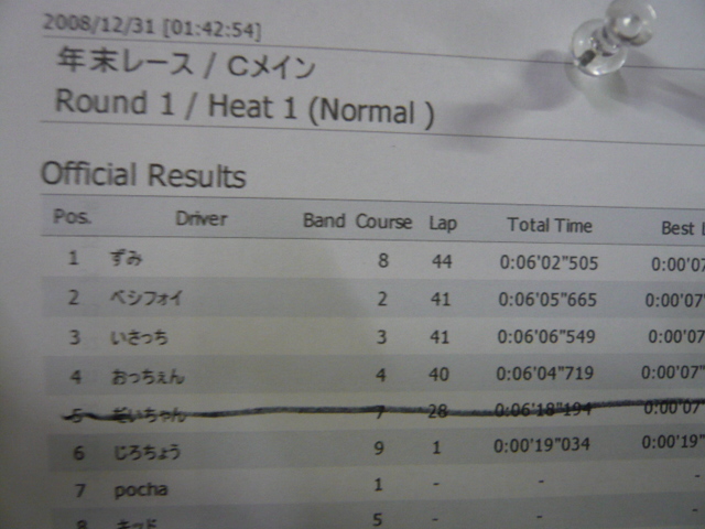 2位には一時はトップを走る快走を見せたハヤカワ君、次回に期待ですね。 3位にはコレマタ超快走のnaッ産が入りました。 勝ち上がりを決めたいジロ超&済低は・・・・、空回りまくりで4・5位に・・・・・ 転がりまくりのキッド☆が6位