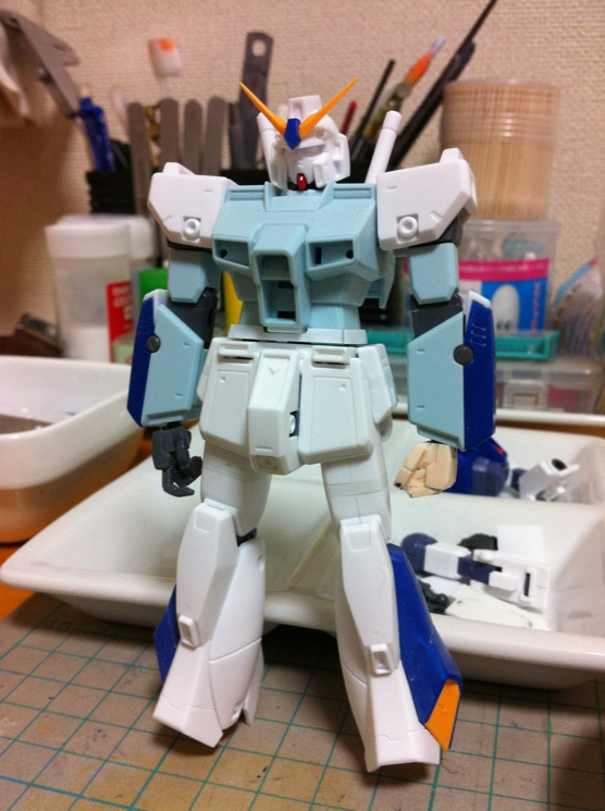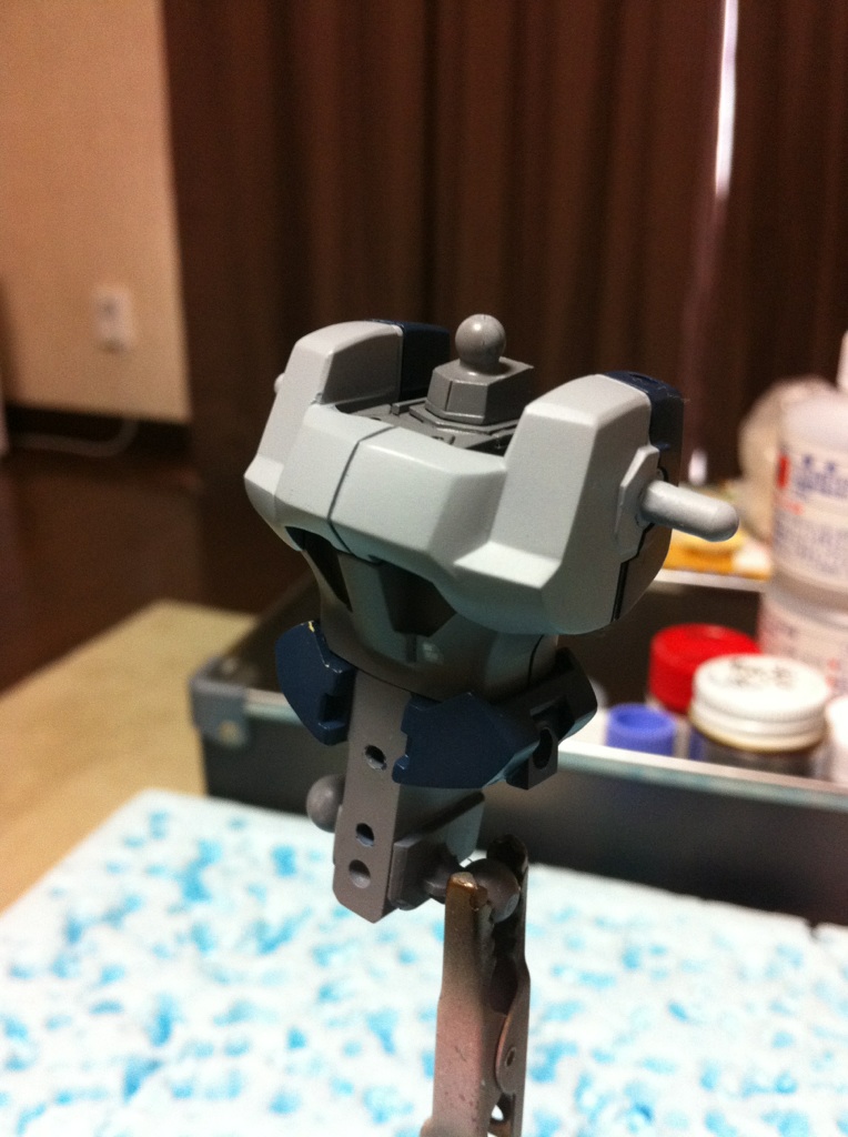 今日も今日とてガンプラ日記 破損した胸部は接着→整面→サフまで終了。