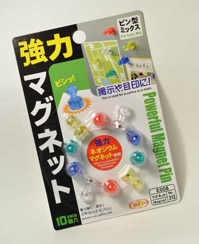 アレックスのシールドのマウント方法の件 早速、某100均にてネオジム磁石なピンを購入