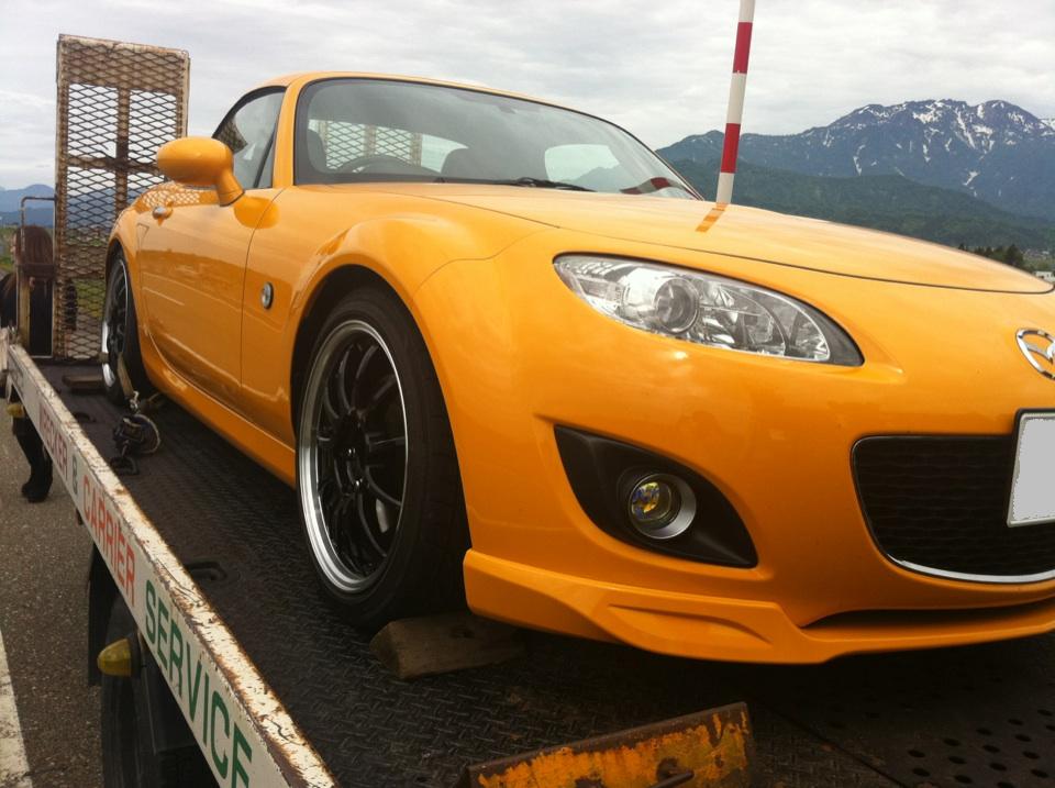 で、その軽井沢に行く道中、事件が起こりました!!!! バンッ!! ロードスター君、120kmでいきなり横向きました(怖)