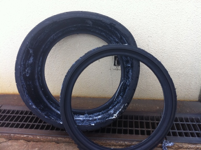 で、問題なのはタイヤです、タイヤ量販店など数件に電話したんですが同じサイズのタイヤは何処にも在庫が有りませんとの事、さてどうしようと悩み頼れる兄貴トモ君に相談。