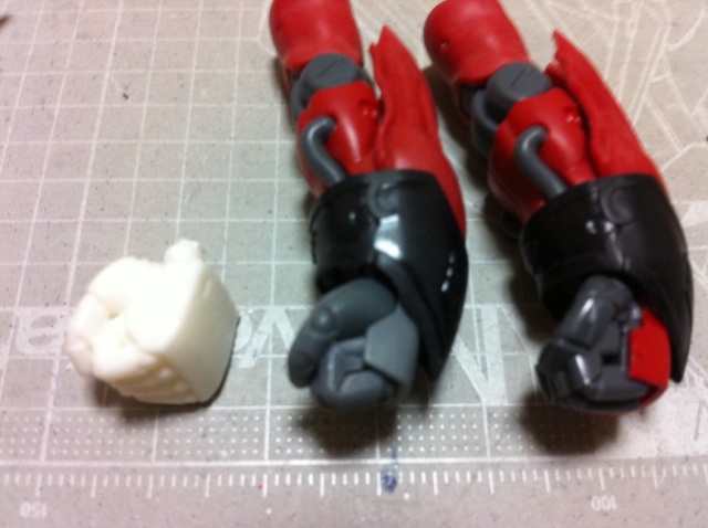 てな感じ。 今日はシナンジュの拳の話。 1/144のガンプラを作るにあたり、あのデカクて不細工な握り拳の形状は永遠の問題点だと思っている(爆) が、ここ最近ではキットの拳の形状もソコソコにはなってきている・・・のだが、ken16w的に納得がいかない。