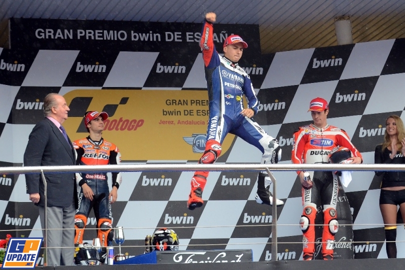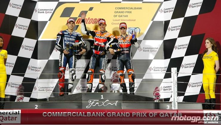 優勝は地元のロレンソ、二位にも地元のペドロサ、三位にロッシのチームメイトのヘイデンが入ったのが唯一の救いか・・・